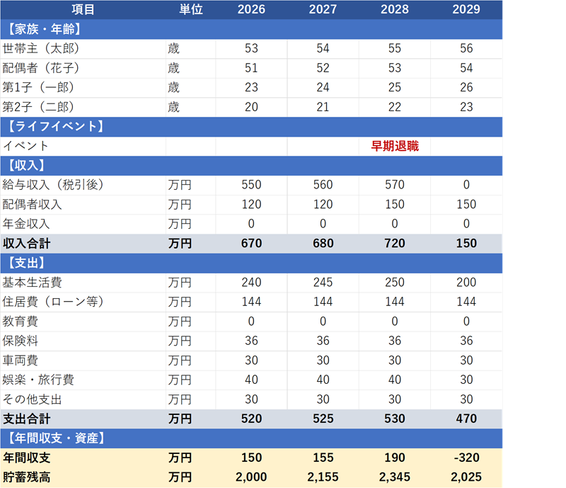 自分と家族のライフイベントと、将来の貯金残高を